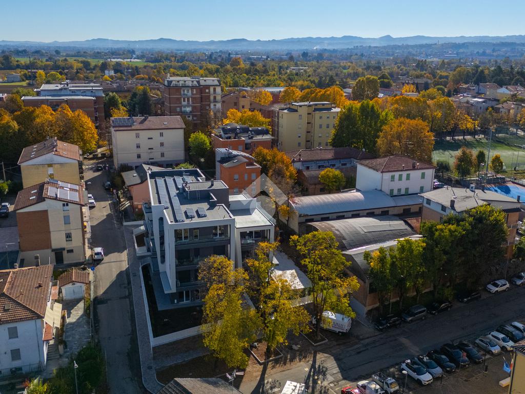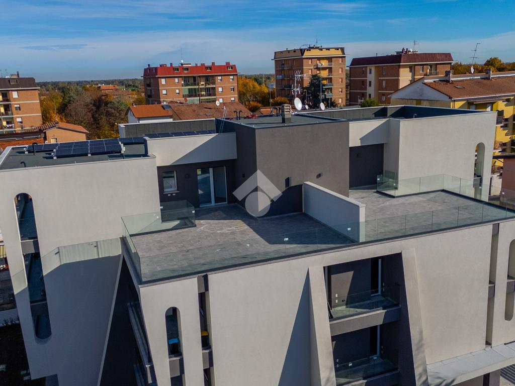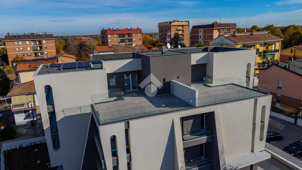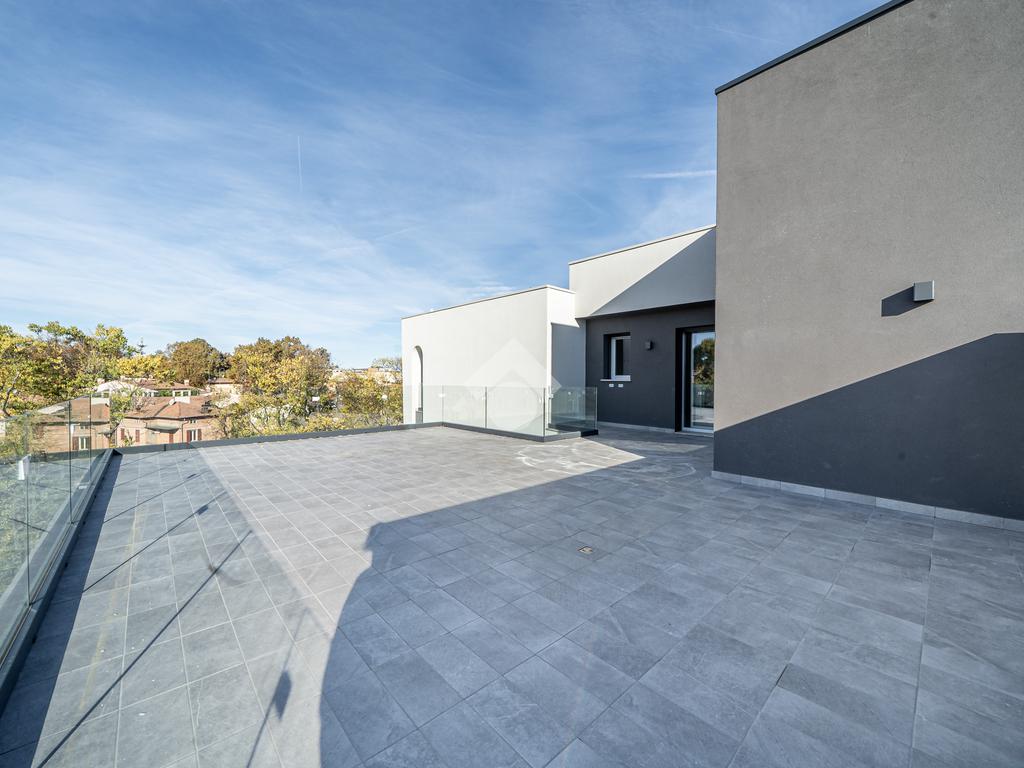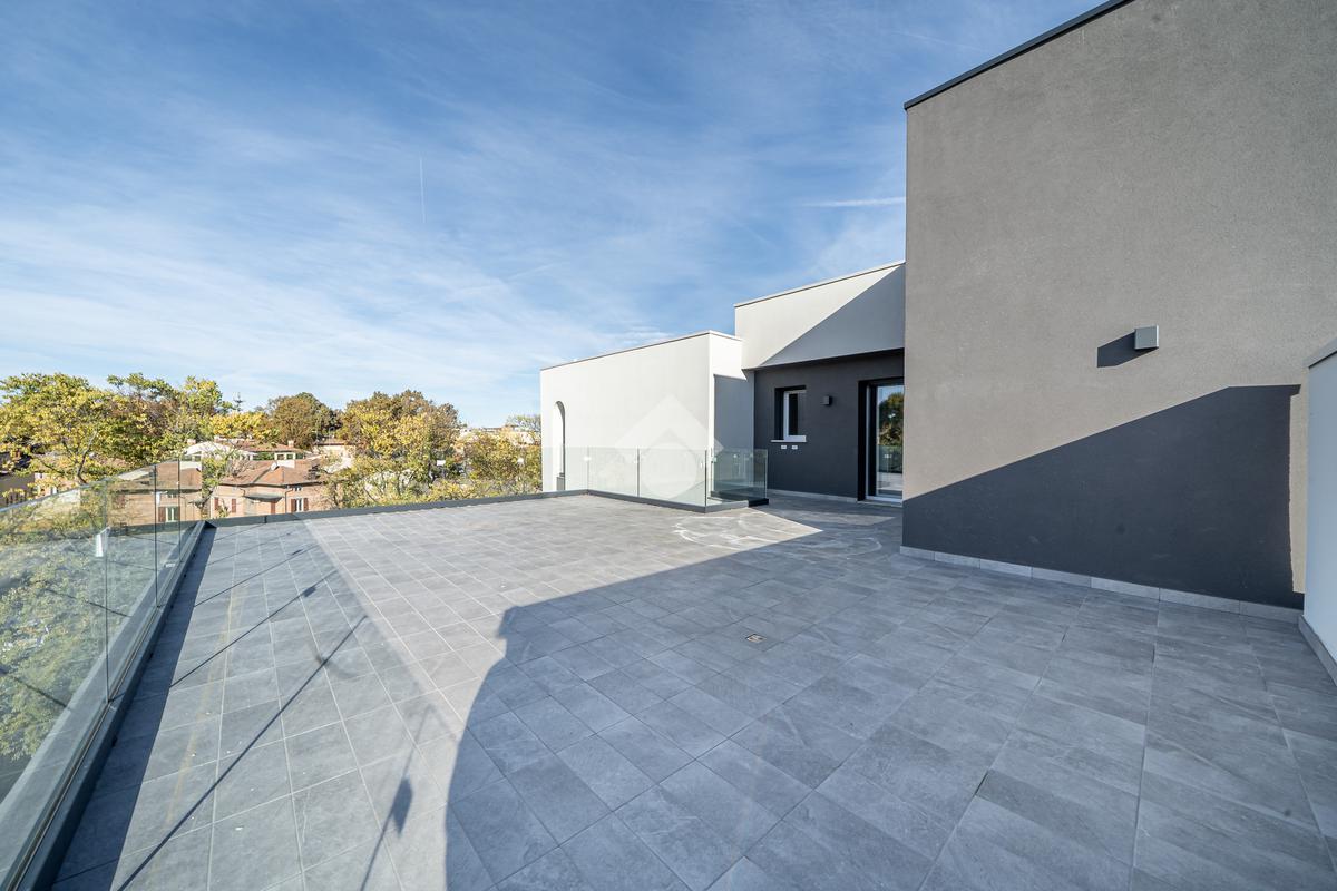 CASTELNUOVO RANGONE: In elgante intervento residenziale di nuova costruzione in posizione centralissima al paese proponiamo attico con ampio terrazzo solarium panoramico. Ingresso nell'ampio soggiorno pranzo dove troviamo ben distinta la zona cottura dalla zona living con accesso al terrazzo di ca 70 mq. Bagno ospiti. Il reparto notte offre un secondo bagno e 2 camere da letto matrimoniali tutte affacciate sul secondo balcone. Compreso nel prezzo Garage e posto auto assegnato. PRONTA CONSEGNA