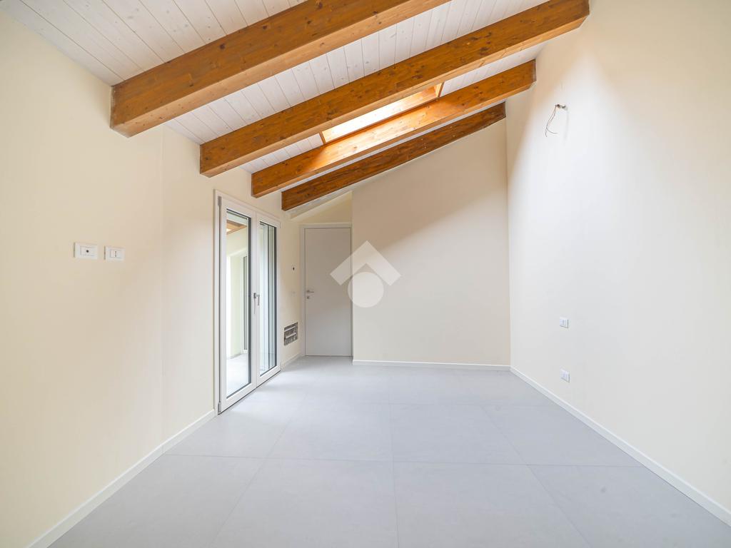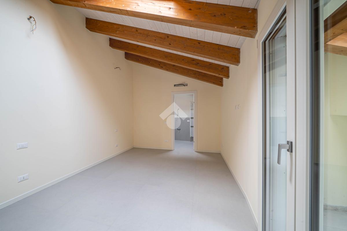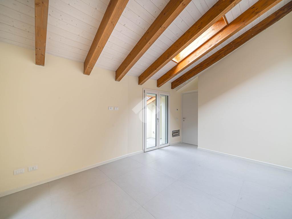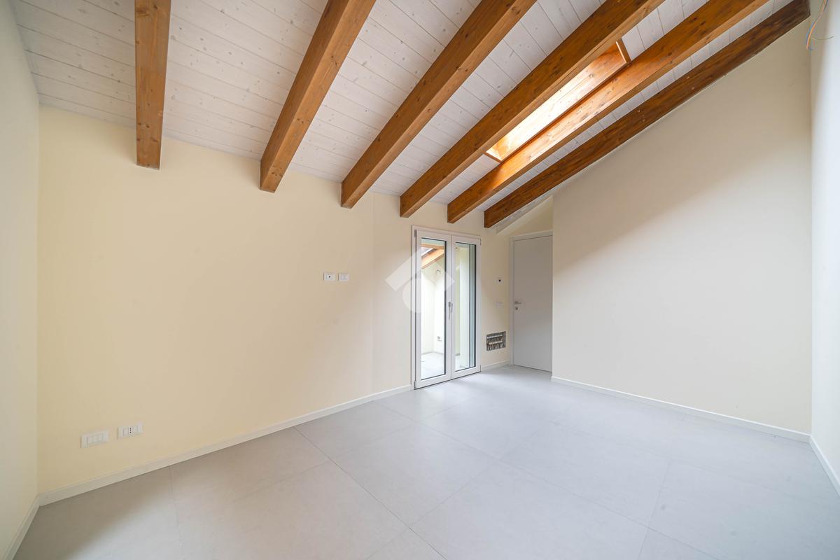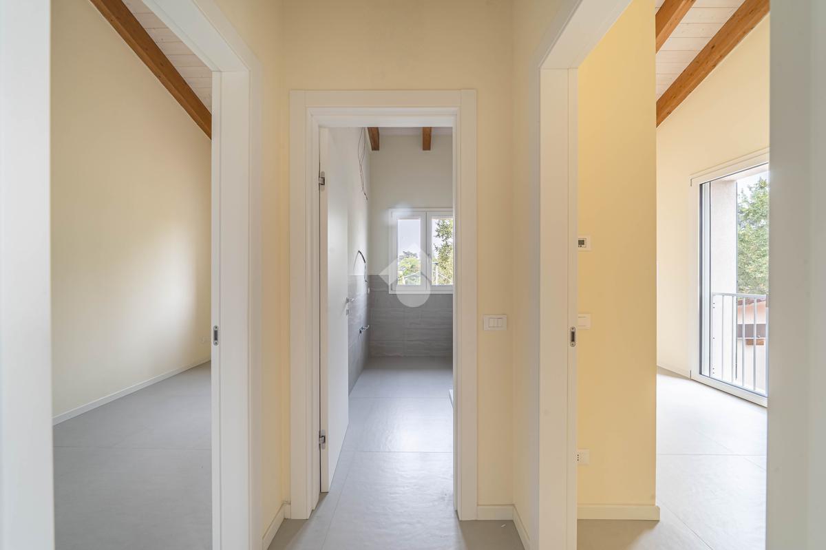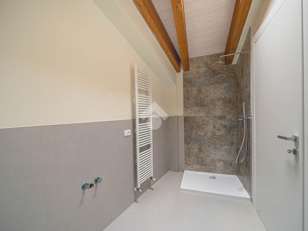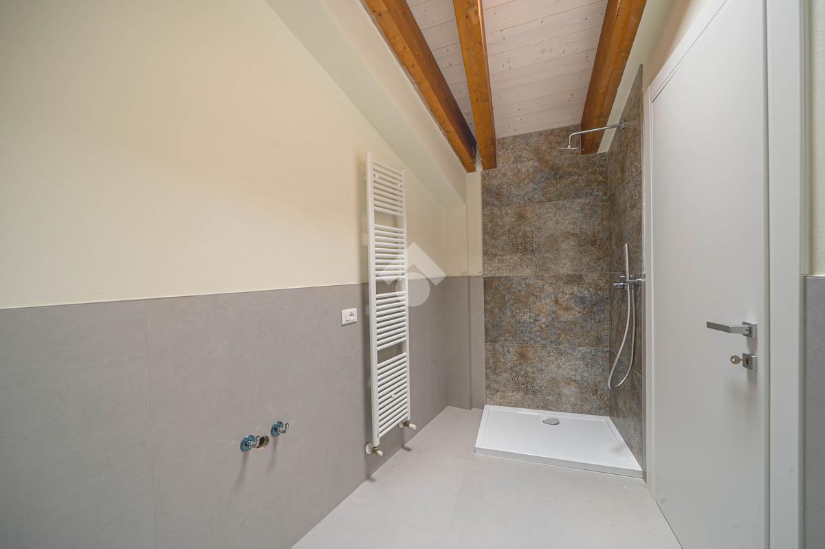 Attico, ingresso pranzo soggiorno, cucina separabile 36 mq, matrimoniale con bagno in camera e loggia, due camere singole, bagno con finestra, cantina. Possibilità di posti auto privati coperta da pergola fotovoltaica privata circa 1,5Kw.