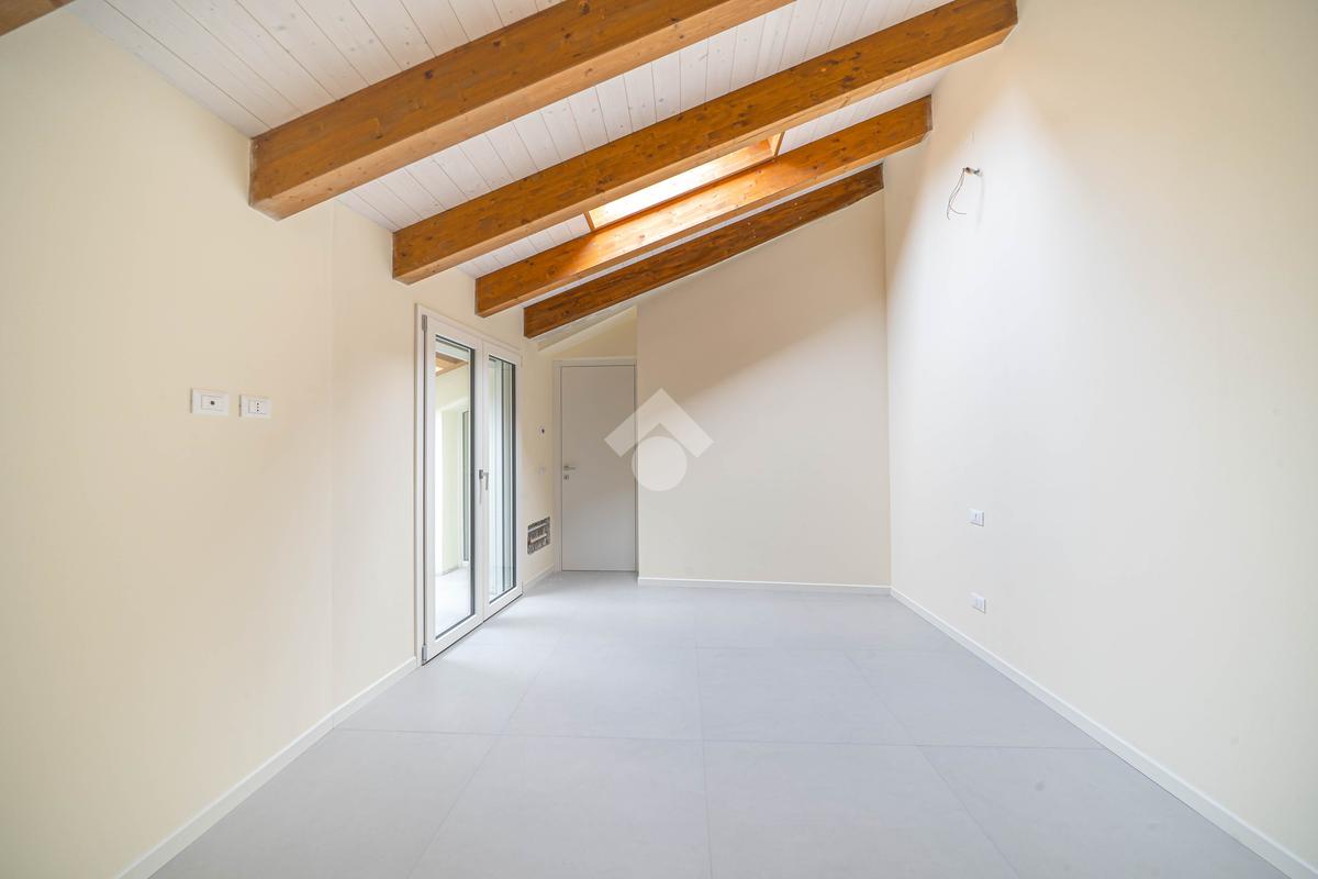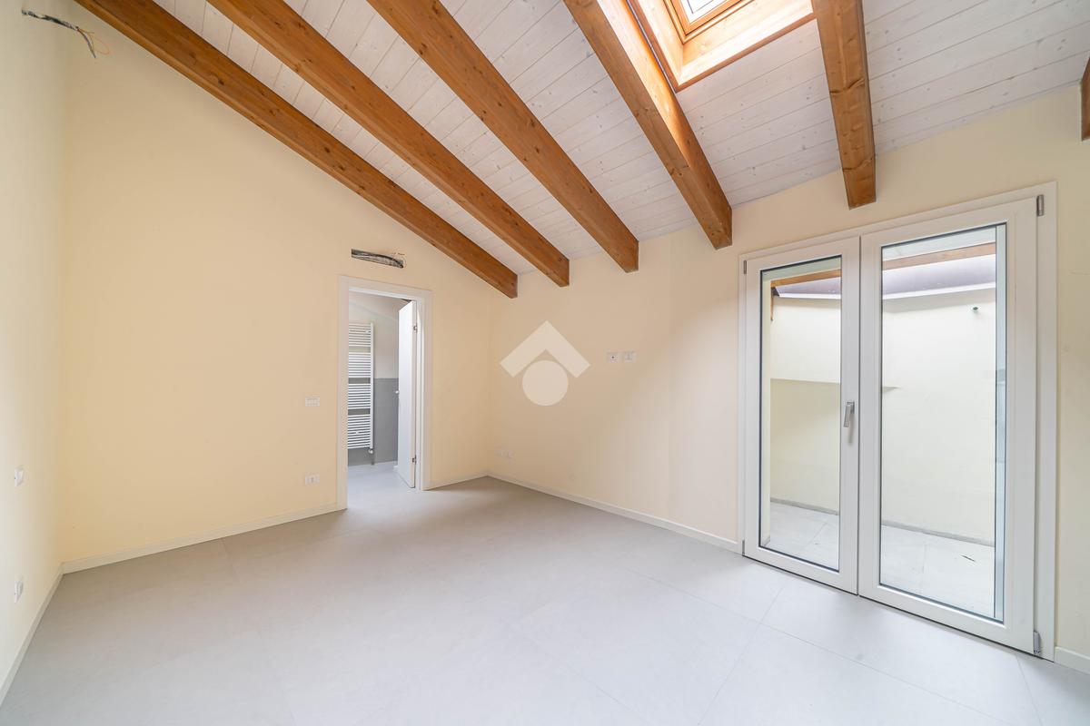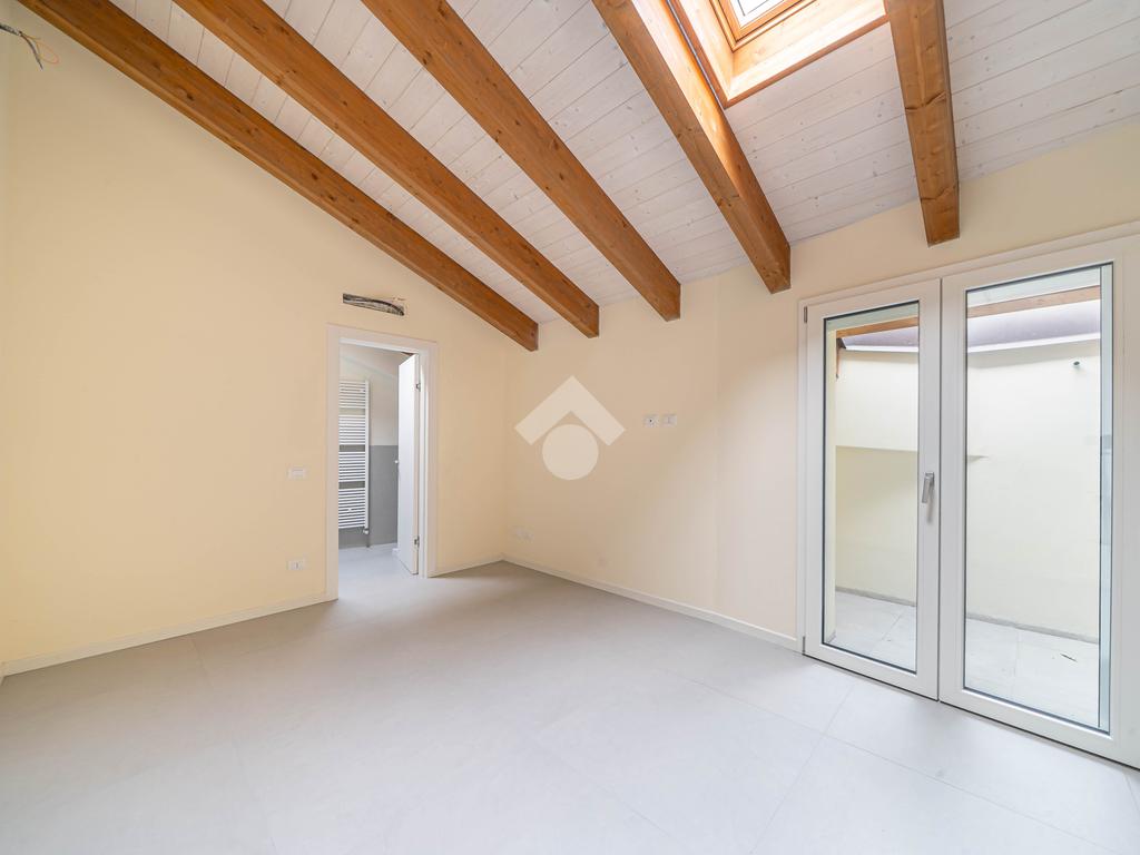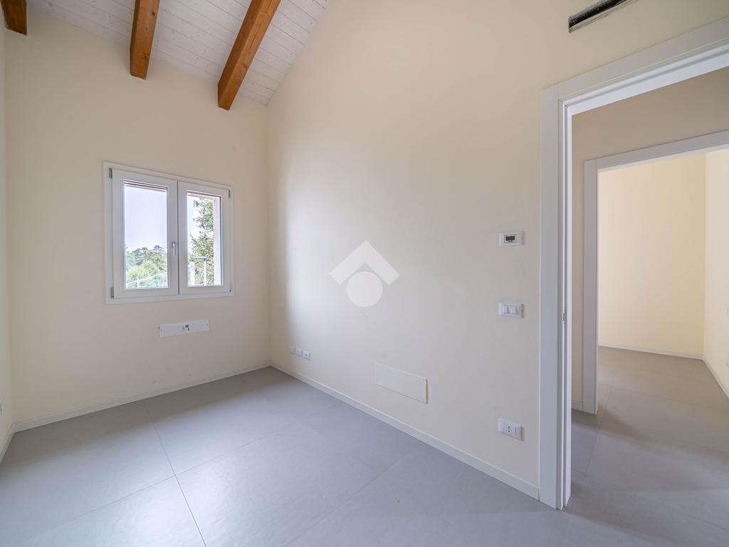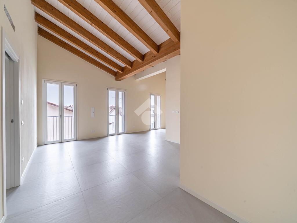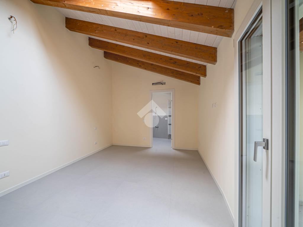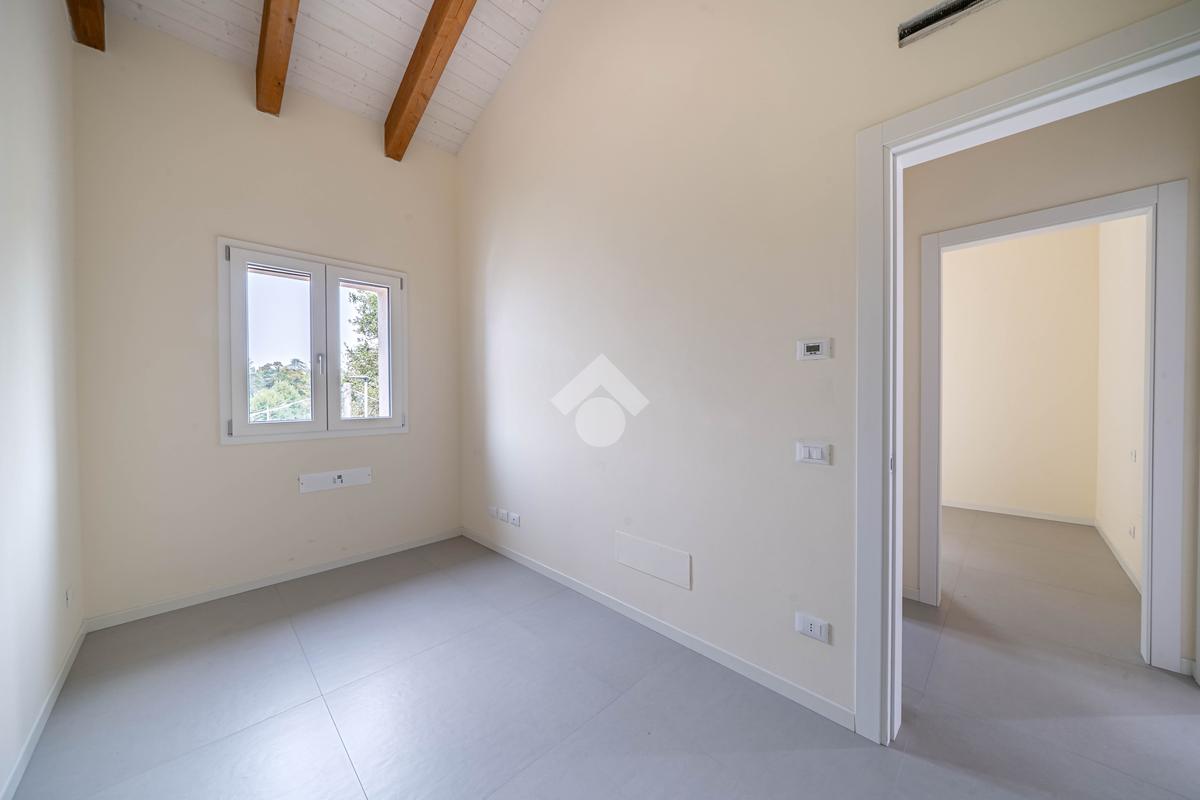Attico, ingresso pranzo soggiorno, cucina separabile 36 mq, matrimoniale con bagno in camera e loggia, due camere singole, bagno con finestra, cantina. Possibilità di posti auto privati coperta da pergola fotovoltaica privata circa 1,5Kw.