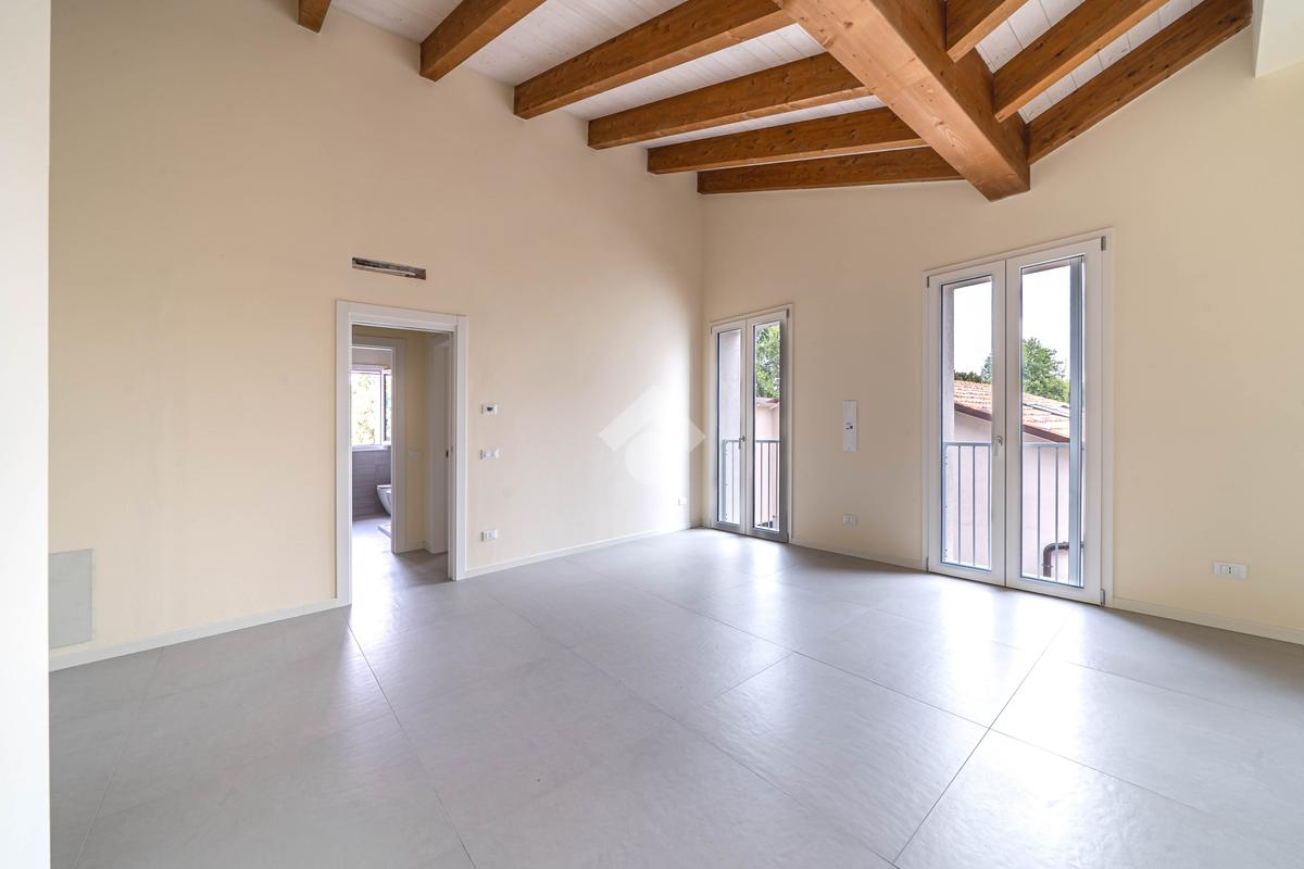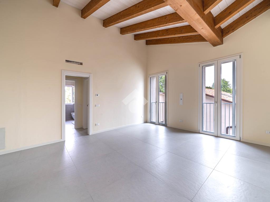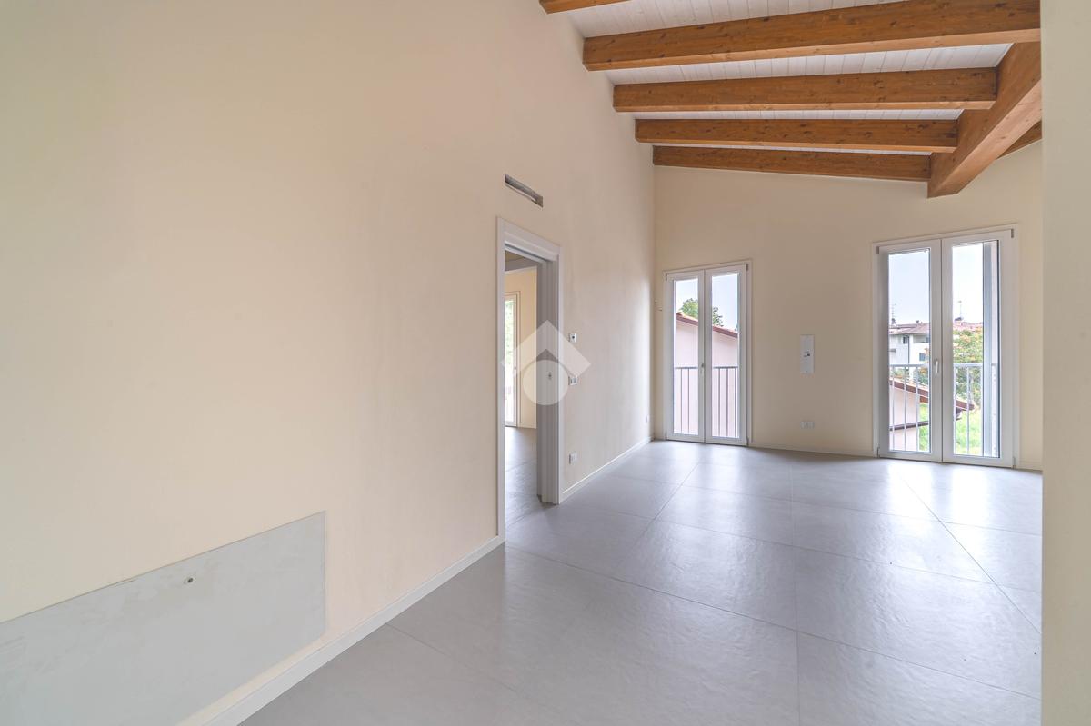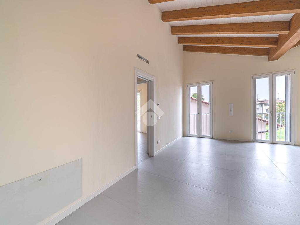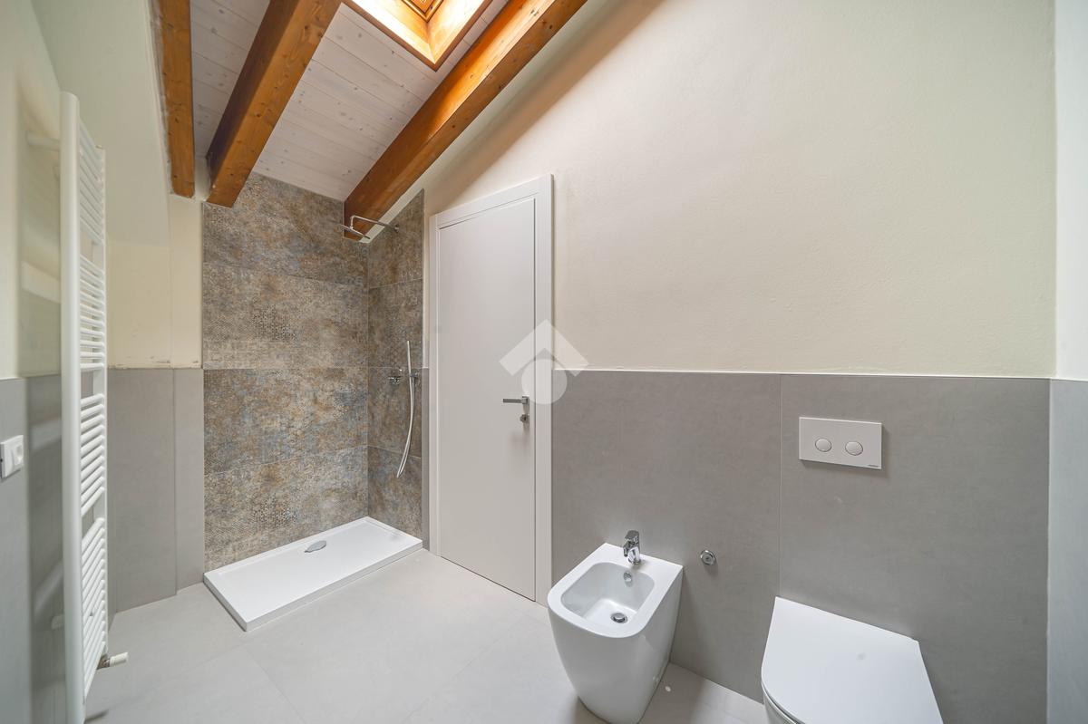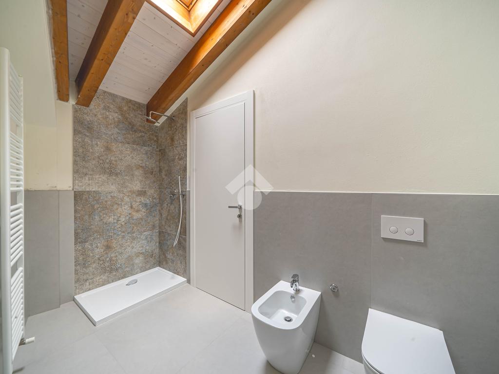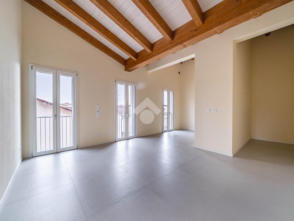 Attico, ingresso pranzo soggiorno, cucina separabile 36 mq, matrimoniale con bagno in camera e loggia, due camere singole, bagno con finestra, cantina. Possibilità di posti auto privati coperta da pergola fotovoltaica privata circa 1,5Kw.