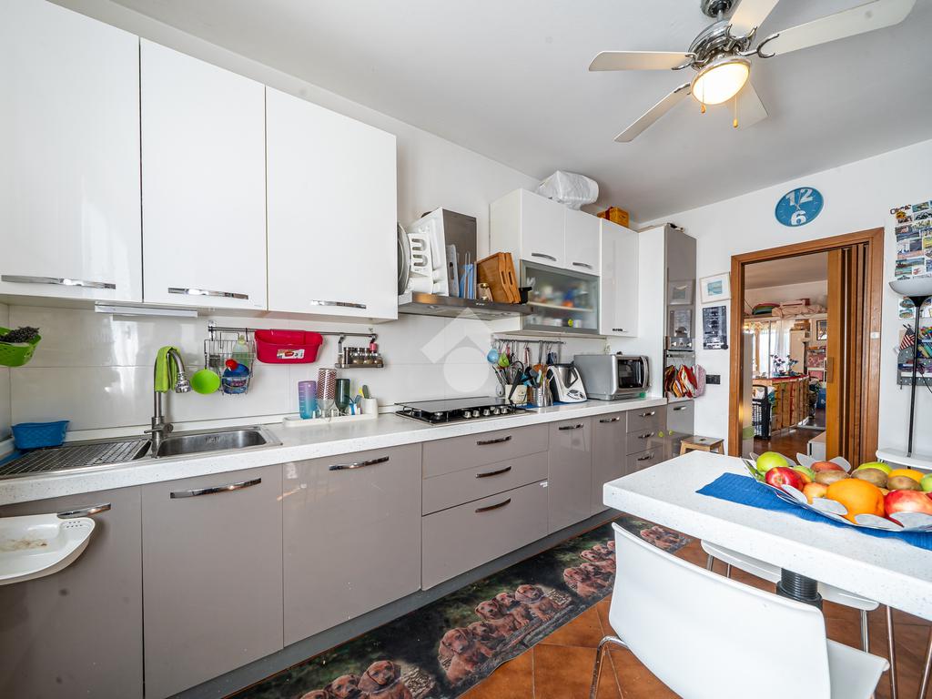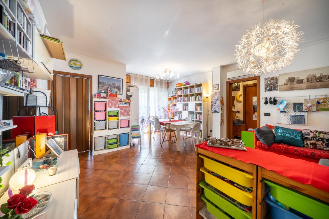 L'edificio, costruito nel 1991, è dotato di ascensore e l'appartamento dispone di aria condizionata, assicurando un ambiente piacevole in ogni stagione. Completa la proprietà un box auto, che offre comodità e sicurezza per il parcheggio.